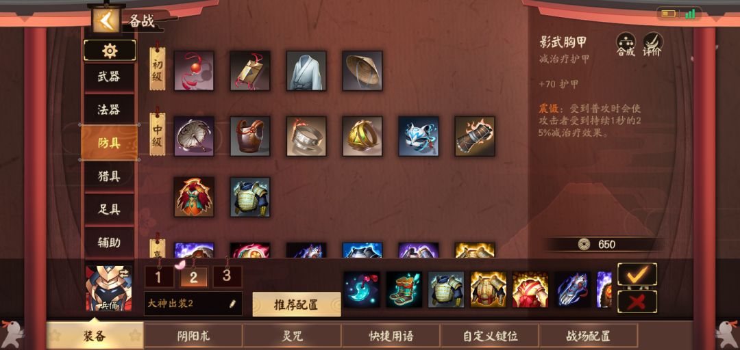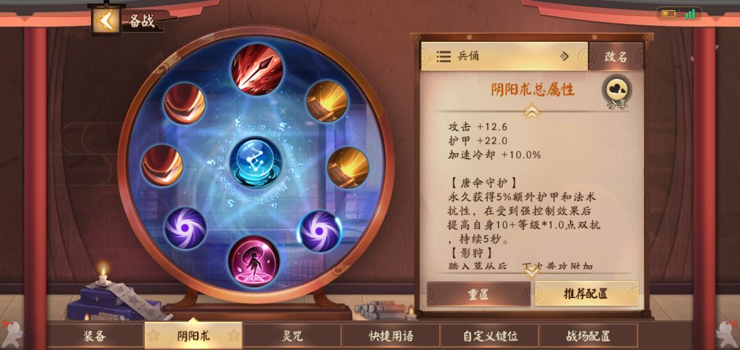 兵佣因为自身前期强度非常非常高,阴阳术完全没有什么最佳选择,不过护甲对兵勇的加成绝对高过于生命值和法抗,如何选择完全随你喜欢。出装推荐以及打法