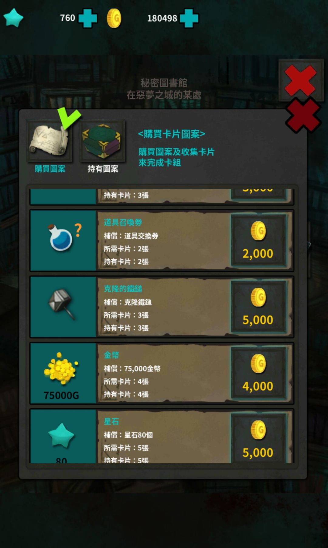 在你推图之后你会获得金币,金币在初期建议全部投到卡片!!划重点!首先买这一栏的图纸制作