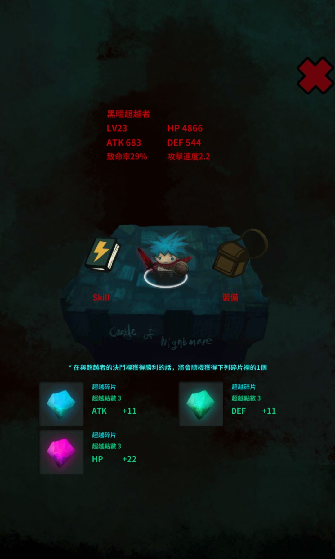 你的主要任务当然是剧情图层,刚开始还可以一路推,但是之后你会发现你刷不过小怪了,这时你就需要刷无限城堡了,自动推楼,刷等级,等级上去了就可以试一试再往下推,无限城堡的小怪容易的多,当你刷过一百层以后你会发现你可以超越响应等级的人物,只能主角一个人挑战,挑战后获得挑战碎片(碎片建议前期全部给主角)