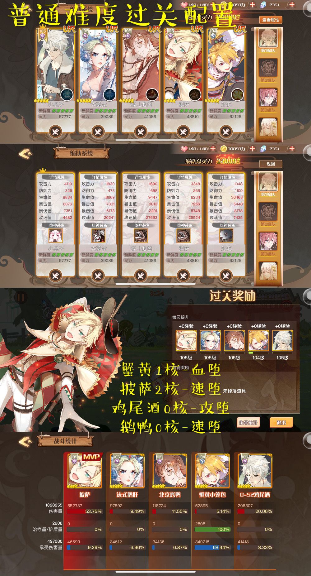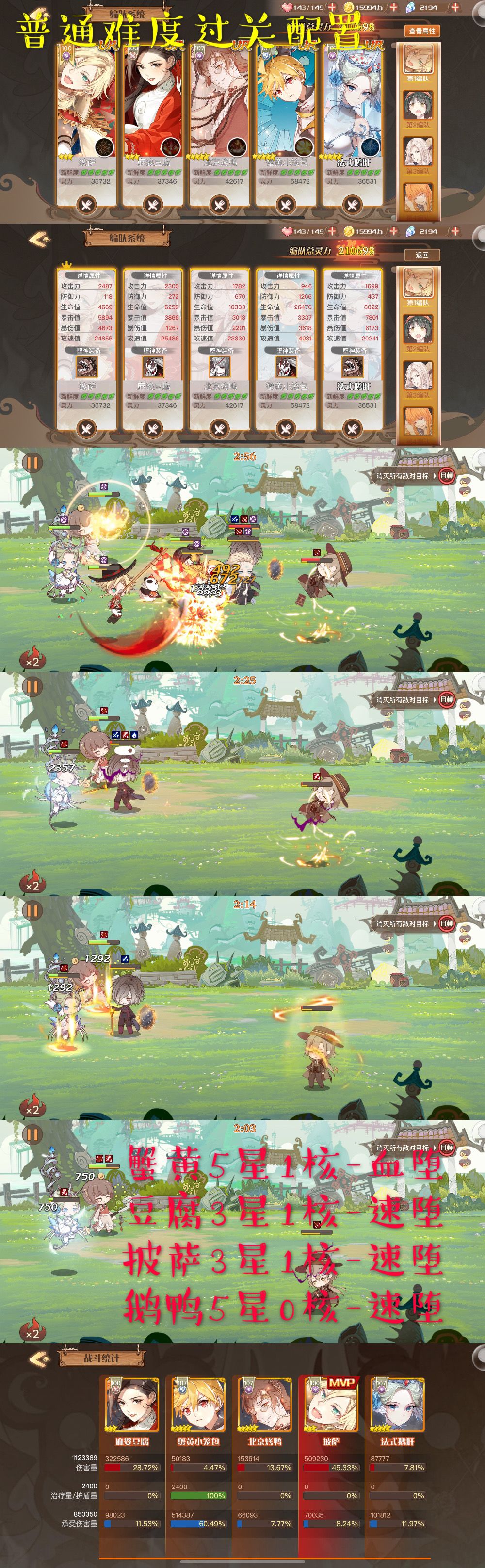 只推荐较低配置的过关阵容,偏普通玩家~