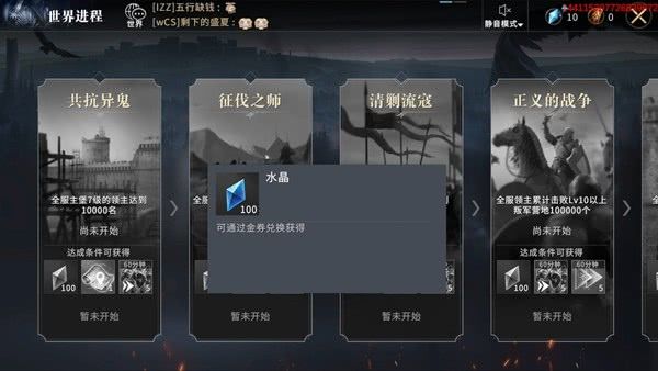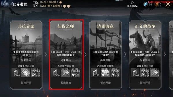 和其他活动相比,档案馆中的世界进程有诸多不同。首先世界进程任务是以区服为单位,世界进程第二章征伐之师,需要全服领主累计击败Lv5以上叛军营地10万个,以某个领主的实力很难完成任务要求。所以世界进程需要区服内所有领主共同努力,方可更快的完成世界进程任务。
