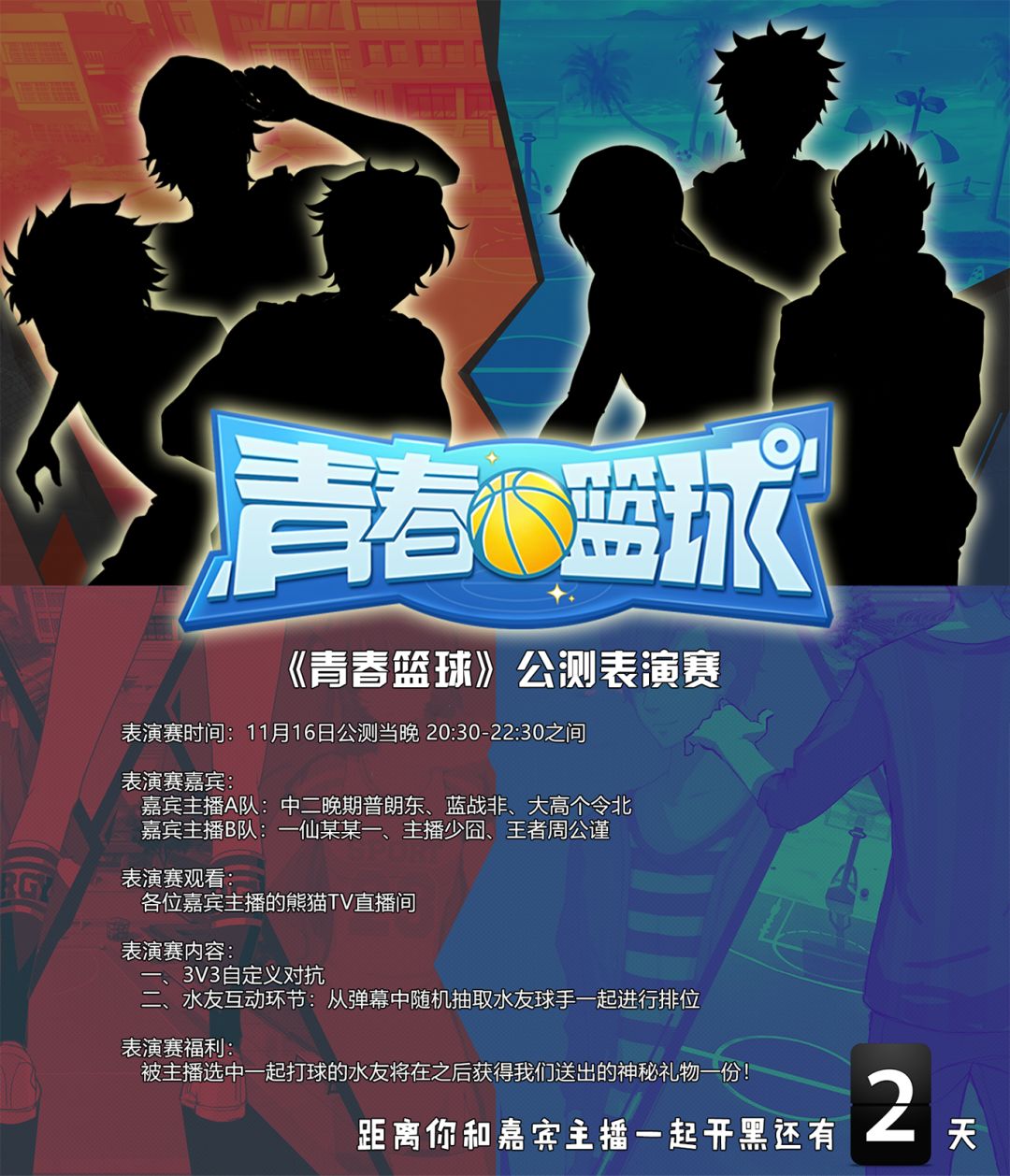 倒计时2天丨《青春篮球》公测表演赛
