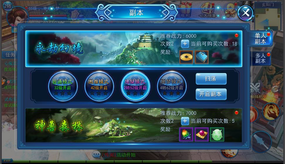 若要说《永恒仙域》世界中外表与内在反差最大的一处秘地,便不得不说说那永劫幻境的奇异。通过副本界面可以选择多种难度,点击开启副本按钮便能踏入这奇妙的永劫幻境之中。