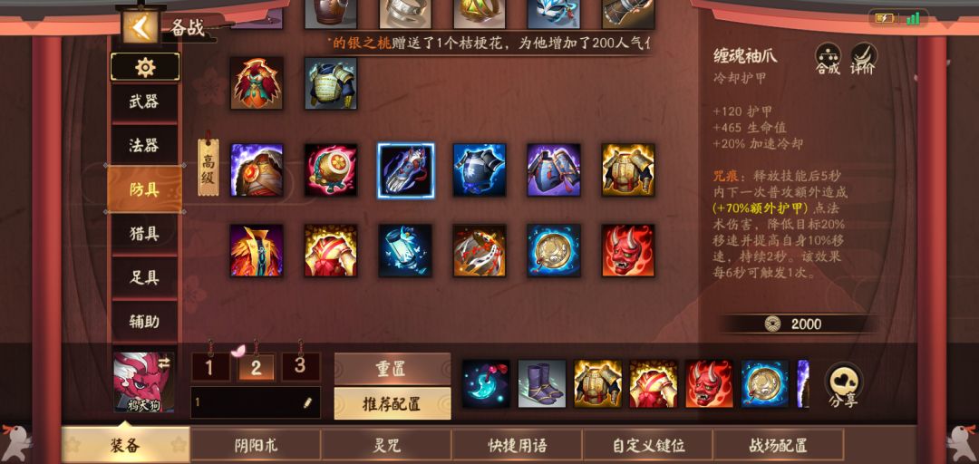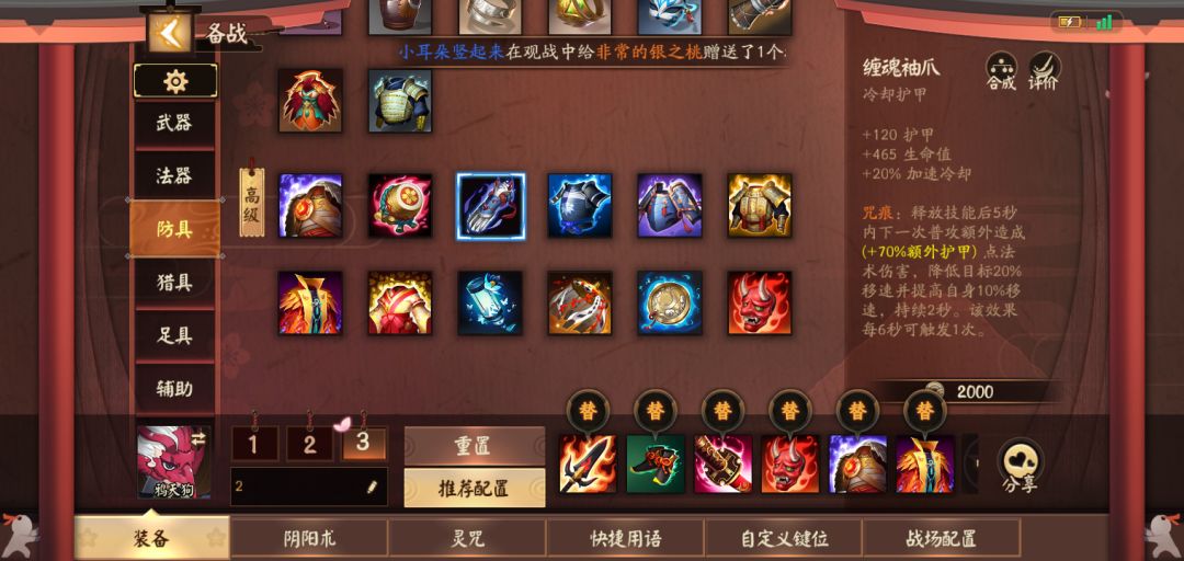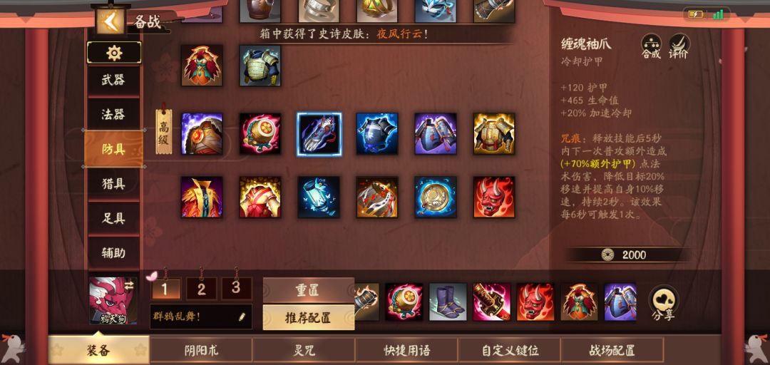 三日月换成这个(这玩意对上单鸦天狗来说第一件出有点拖节奏,后面出提升又不大。真的不建议