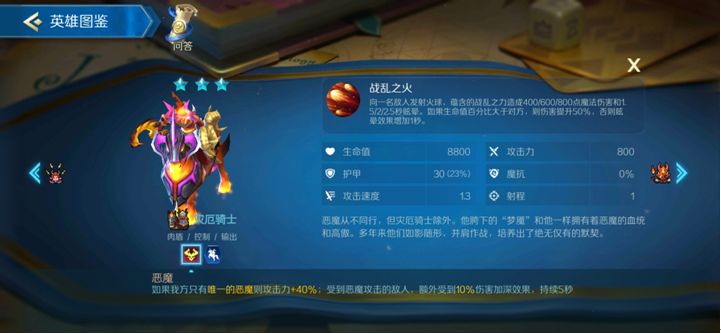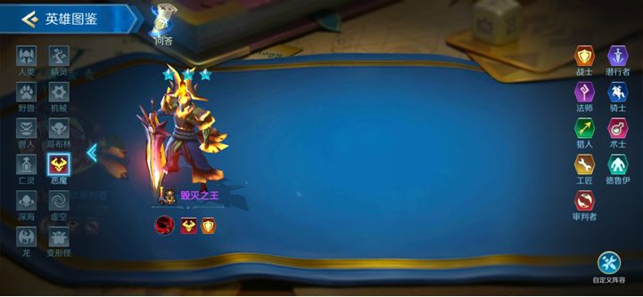 种族英雄:5名。魔女莉莉丝、灾厄骑士、炎魔、地狱审判者、毁灭之王