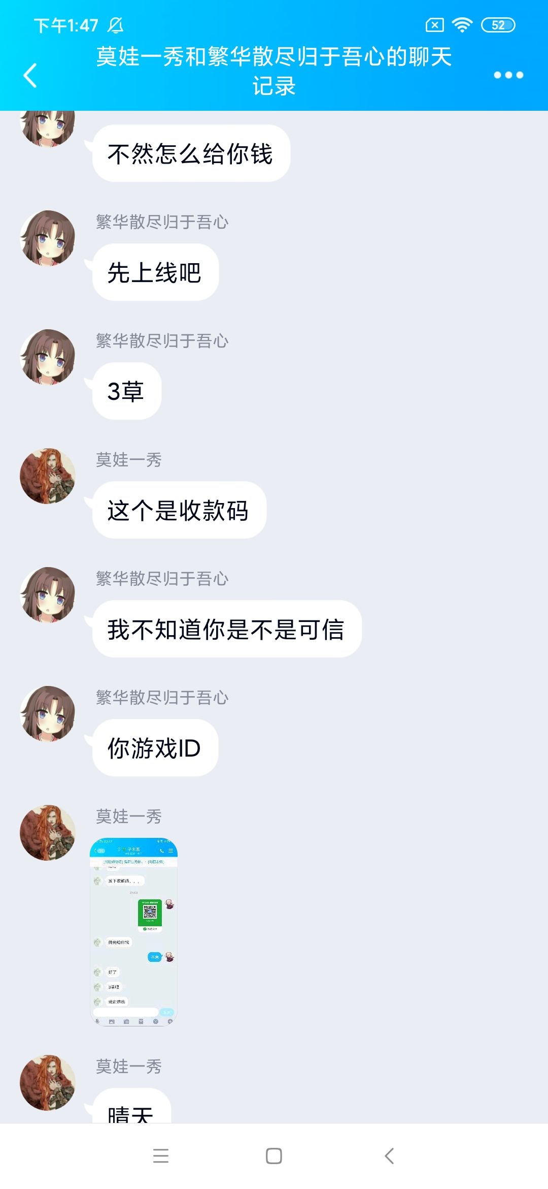 接我之前的那个贴子,这个骗子通常会进到的群里边,然后改成随机一个群员相同的名字跟头像,收币的时候注意QQ号,千万别被骗了