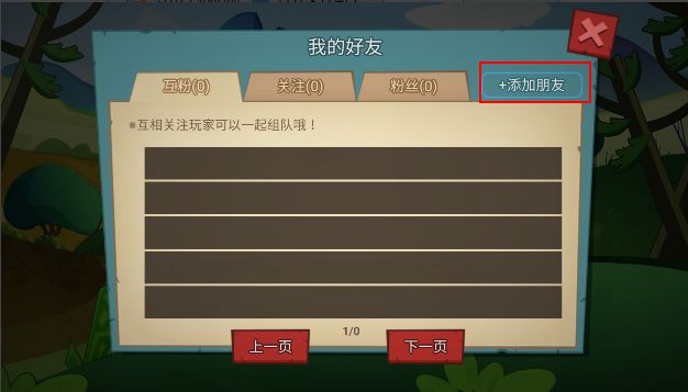 2、进入好友界面后,点击“添加朋友”,然后输入好友的游戏ID或者游戏名字,然后点击关注,等好友也关注你,成为互粉关系之后,就可以一起组队游戏啦!