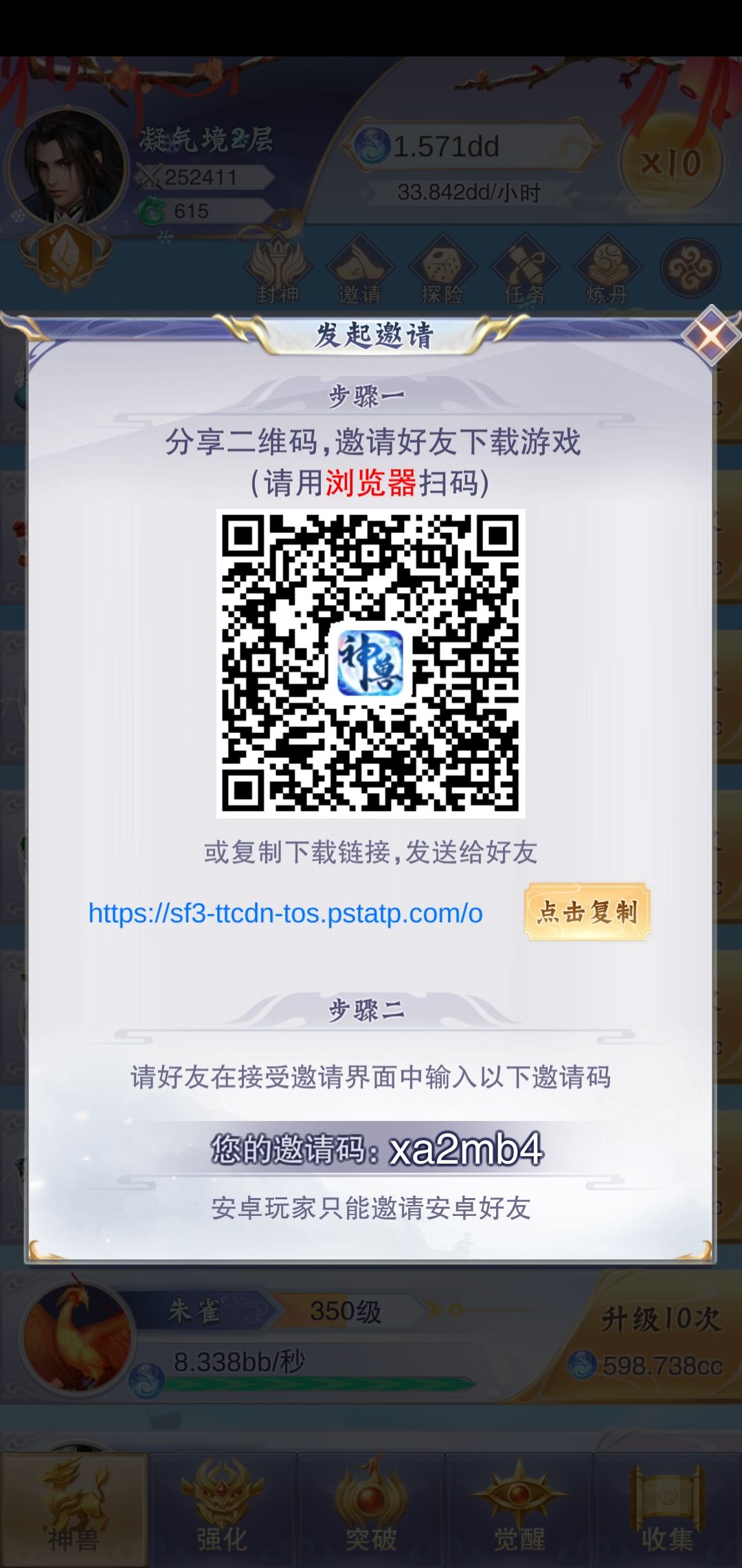 佛系挂机游戏,进游戏填写邀请码得仙 邀请码 xa2mb4