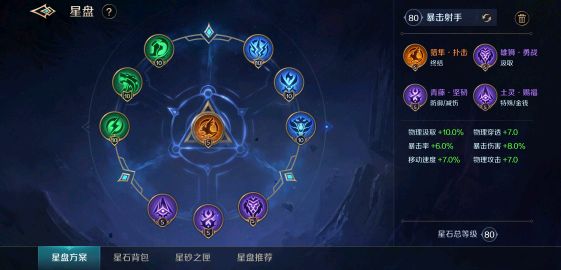 星盘我推荐这套暴击AD符文,主属性为暴击,副属性为移速,与精卫本身的特性十分契合(灵活、快速、高爆发)。