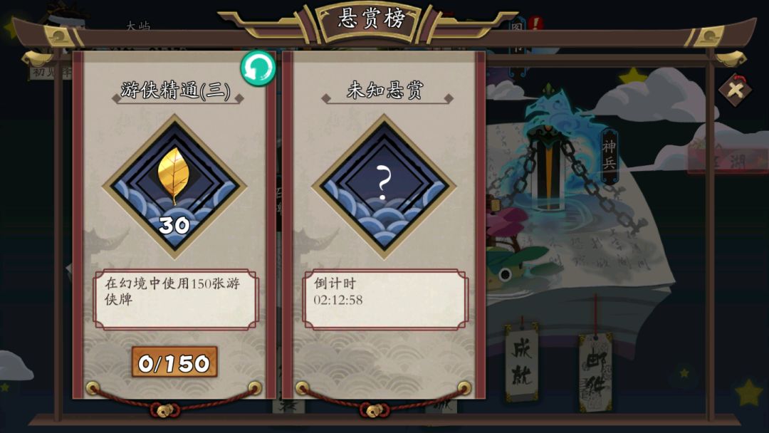 悬赏玩法,类似每日任务,6小时刷新一个,要及时做悬赏以免占用刷新时间哟。该玩法开启条件为在幻境和河童对话,河童小朋友会送你一封信,然后外面的世界就开启啦。