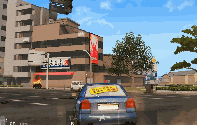第一种情况是当我们在城区的马路上驾驶载具时,遭到道路两旁的楼上的对手攻击。由于对手此时站在高处,视野相对比较广,能轻松地攻击我们。