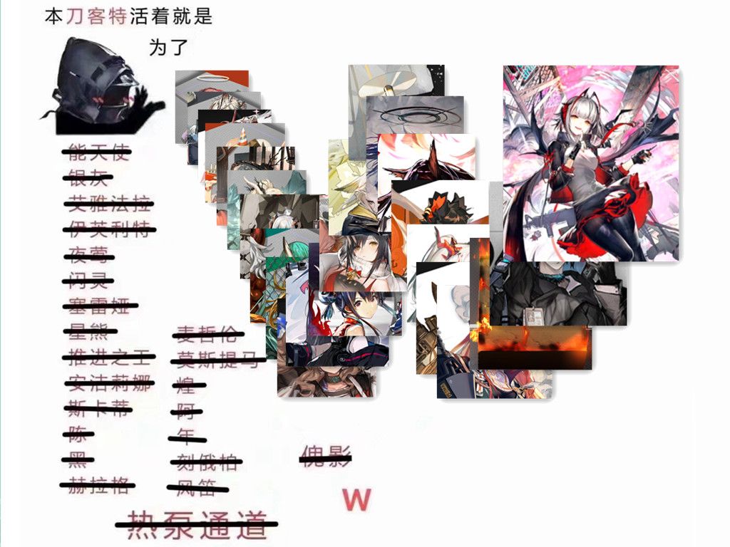 那么,考验你们的时候到了,图里出现了谁,共多少干员,是精二立绘,精一立绘还是皮肤?我还藏了个彩蛋在里面,有时间(闲的蛋疼)的刀客塔可以找一下