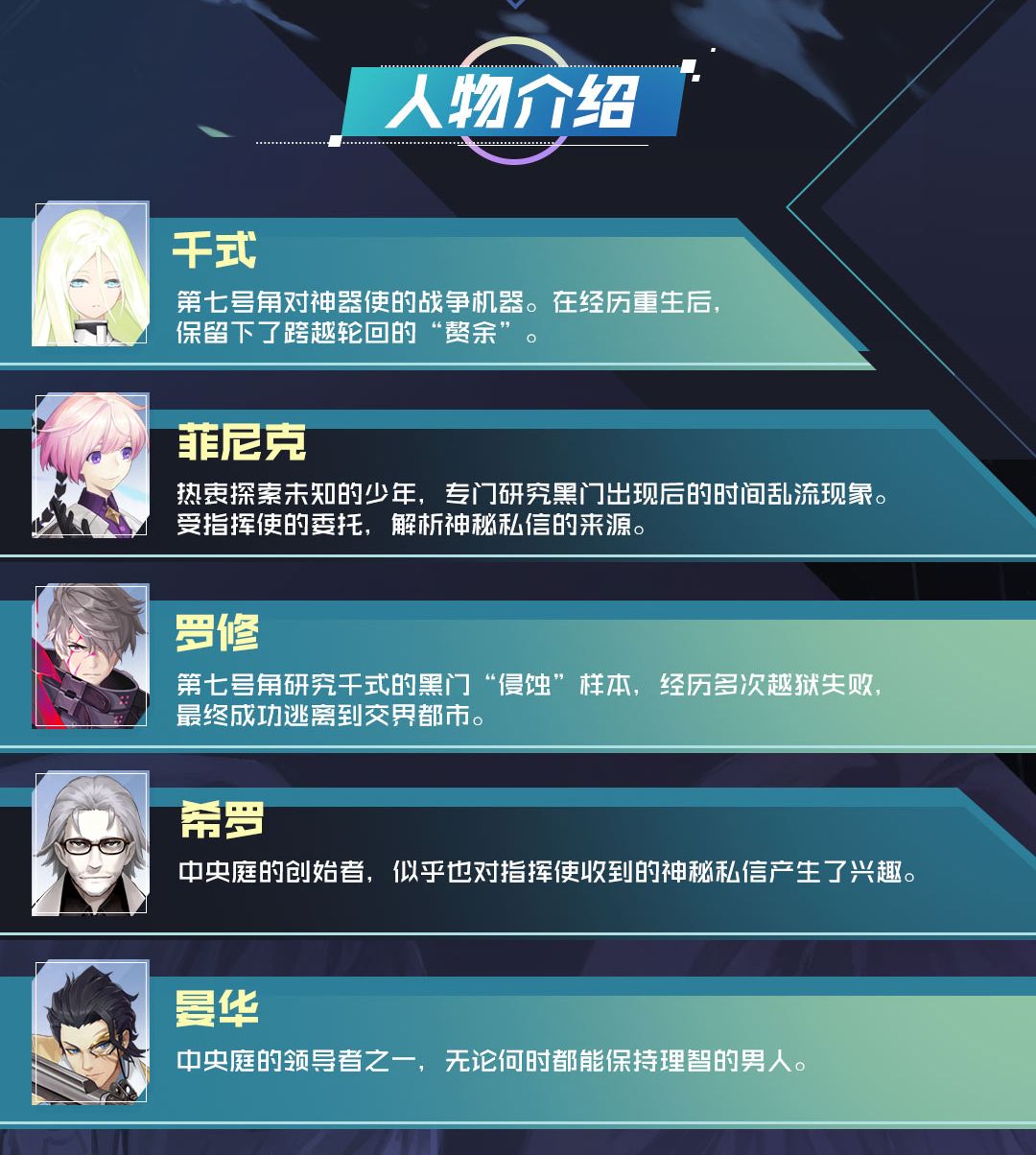 新篇章剧情即将展开,这一次重生归来的千式、罗修,是否能够再一次逃脱第七号角的追捕?当神秘私信到来时,一直探索着未知的菲尼克,是否能够成功解开时间轮回背后隐藏的真相。晏华等人这一次也无可避免地被卷入到这一次的事件当中,而希罗又在此次事态中扮演着什么角色?让我们一起拭目以待,一起寻找轮回中残留的信标吧!