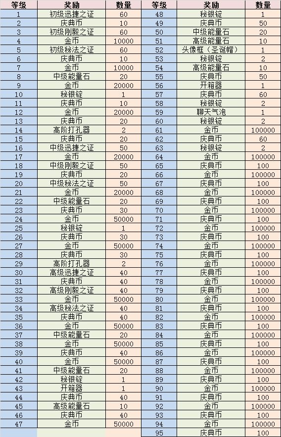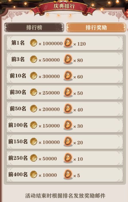 庆典排行对应奖励一览:(排行奖励由活动结束时,最终庆典排行发放对应奖励)
