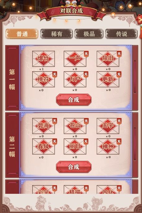 中将加百列的灵感合成为对应春联,每完成一幅对联即可获得庆典币