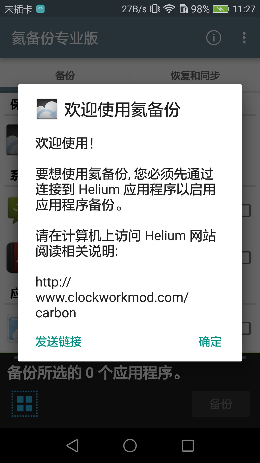 在电脑和手机上都下载氦备份,并用数据线连接;