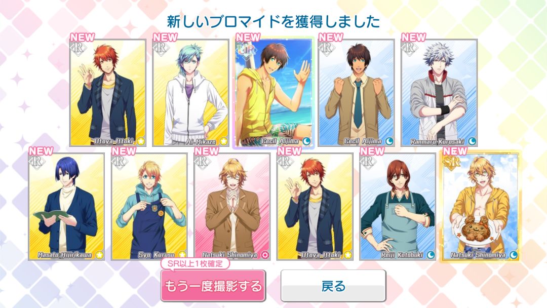 看到有兰兰泳装果断又重新刷了个初始,开始出了限定ur,想着肯定会欧一波抽到兰兰,第二次十连也没来,然后继续肝了第三次十连,终于出了!!结果全抽齐了2333