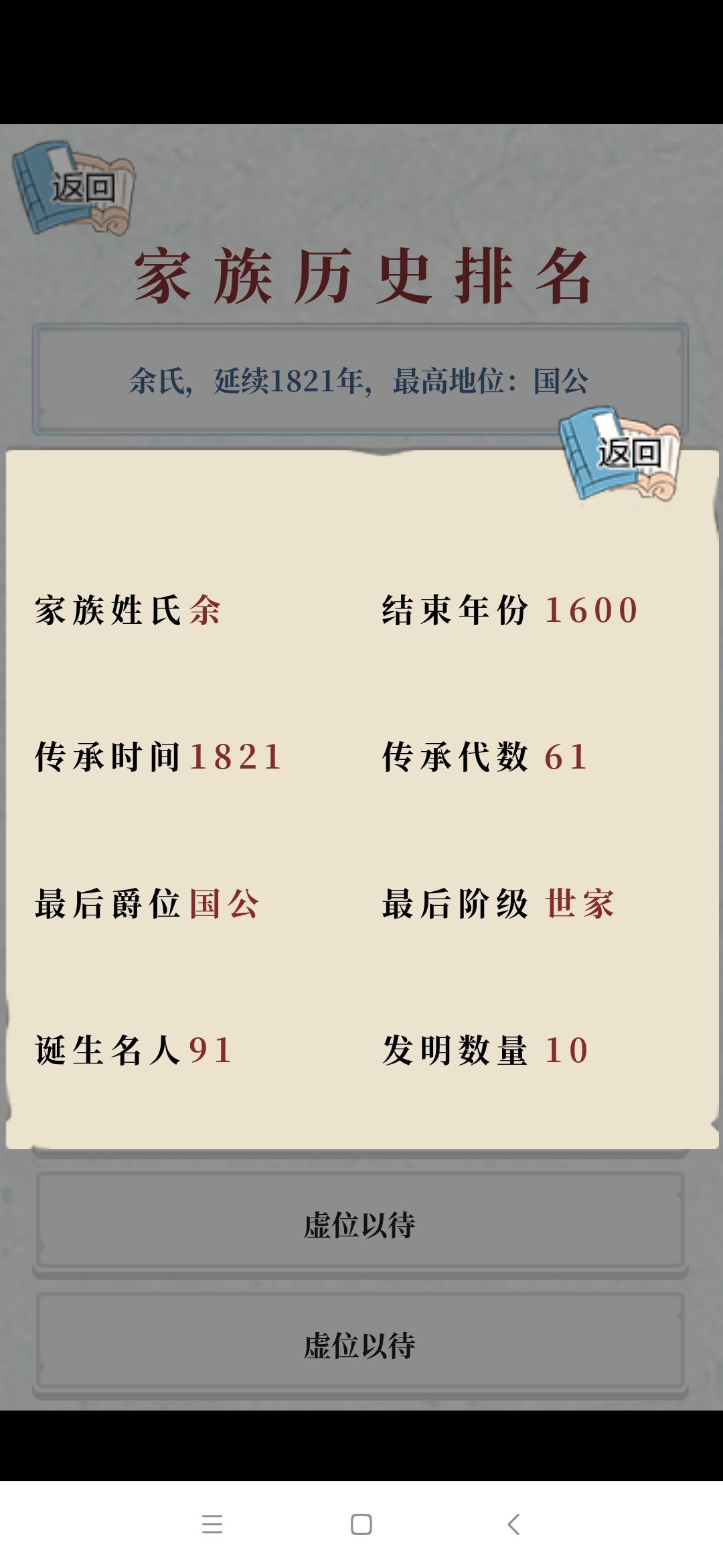 4.后期不要点任何的随机增加田商的,因为家风数值会越来越高,就算买了托梦也没有用,事件失败率高,损失商铺田产无所谓,减人口就比较严重。