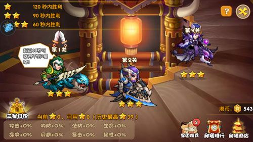 根据此次更新来看,千层塔变得比之前更加有难度从而大幅度提升可玩性,这时小技巧就变得尤为重要了, 玩家每在千层塔向上前进三关,就将面临选择。可以花费之前获得的星星,从3个选项中选择其一,来提升自己阵容的某一项数值,比如暴击、攻击、物防、生命等。