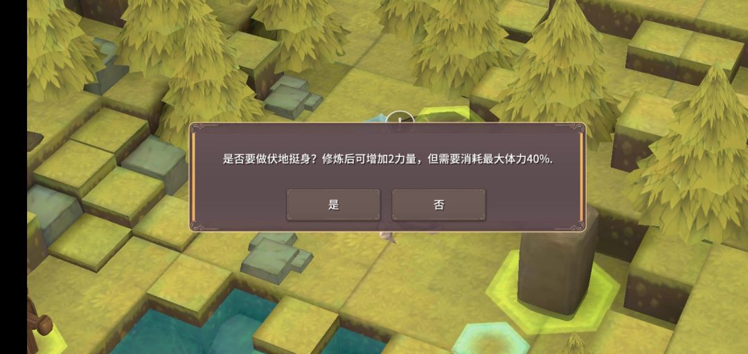 一周目时旁边那个石柱上写着练2力量,1防御,消耗40%的最大体力,当时还想着谁会去用伏地挺身,消耗40%不说还只提升2点力量
