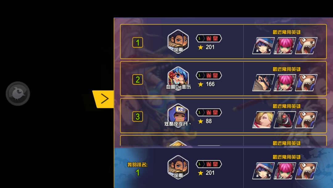 本人游戏ID:深雨,暂列PVP榜第一。