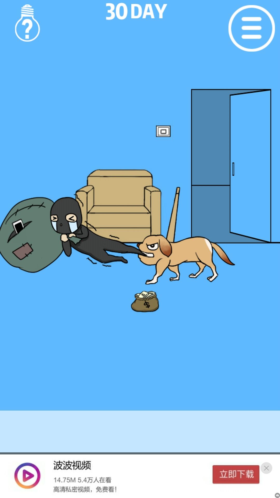 开灯,开门,狗狗终于干了件好事,咬住小偷,拿手机。