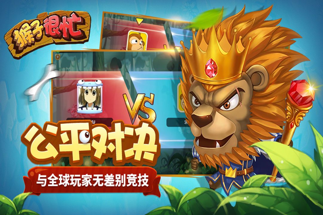 要说《猴子很忙》最好玩的是什么,当然是我与其他动物酣畅淋漓的对战了!玩家可以通过各种各样的方式把对方的动物击落,可以选择削掉所有动物的血条,也可以割开绳子打断棍子让一组动物直接掉下去。战术选择相当丰富,也需要自己的组合攻守兼备。通过手指拖动小动物瞄准,巧妙运用每种动物的弹道,便可赢得胜利啦。