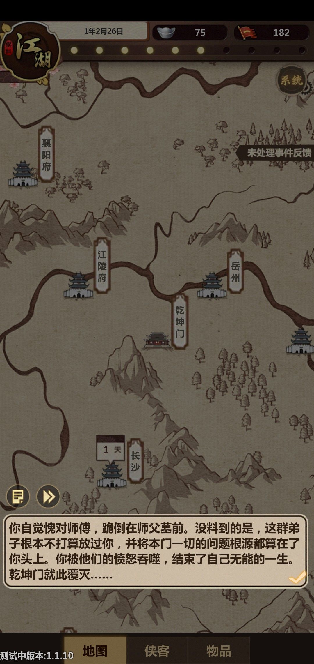 莫名其妙的死亡,游戏太难玩了,银子获取太难了,物价太高了,游戏中没有任何指导性东西,建议那个三万欠款可以安排到玩家成长起来之后,门派太难管理,说明太复杂看不懂,建议也可以每个月交五十俩可以提前交,或者可以给玩家一些熟悉游戏的时间,或者把什么行动力啊什么的补充,获得额外的银子改成看广告获取。