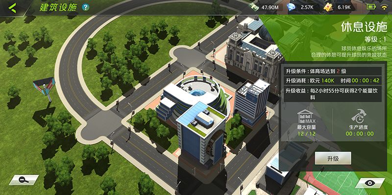 休息设施是球员平时休闲娱乐的场所,适时地放松可以提升球员的士气和竞技状态,升级设施可以提高获得能量饮料的效率。