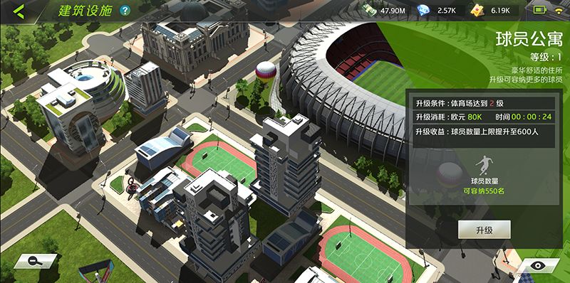 球员公寓是球员的住所,为球员提供豪华舒适的生活环境,升级设施可以提升容纳球员的数量上限。