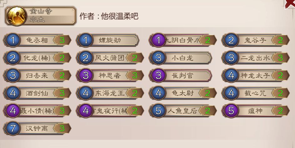 接受大家的提议和指责,上面那套卡的确是当前顶配了,会有很多玩家组不起,下面这套配置稍微低一点,虽然强度没那么高,胜率依旧很可观。