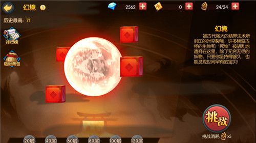 在“幻境”玩法中,玩家们将在战胜同一层的敌人后攻击骰子怪以决定随机前进的层数——有时候会出现真假骰子怪,打错了可要重新挑战本层才能继续前进哦——并根据所处层数触发三种不同的幻境:无双密境中全是小妖怪,玩家们要在数量众多的敌人中杀出一条血路;首领密境中则会出现BOSS级妖怪,战胜之后能获得丰厚的战利品及少量生命值、护甲值的回复。