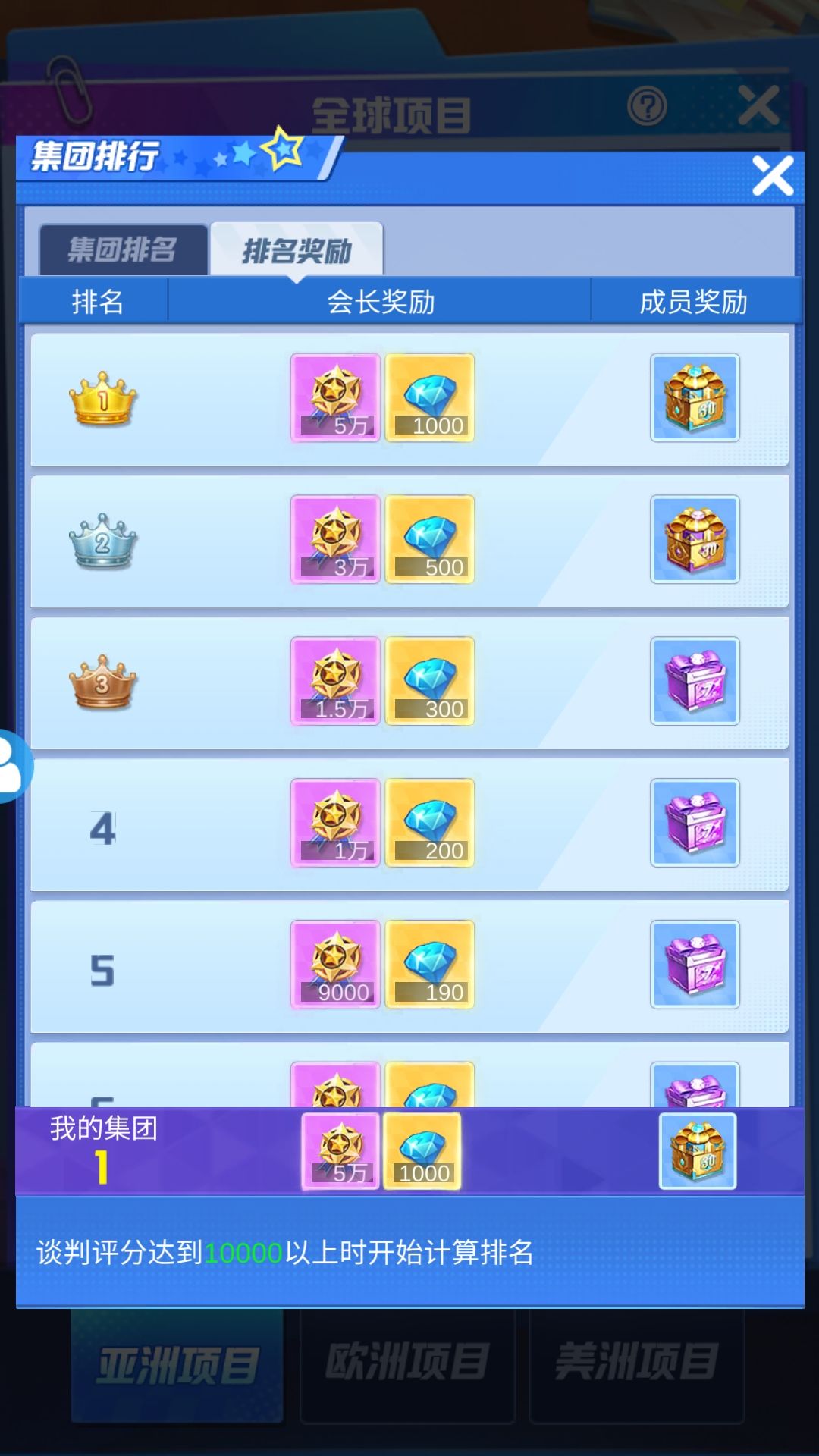 这个是每周集团的结算奖励,第一名会长的福利条件非常可观,所以势必就需要一个,能够带的动集团发展的人。所以不推荐老区或者不是氪佬的人,自己建立一个集团。作为一个新人的话,加入好一点的集团还是可以,多向前辈取取经。