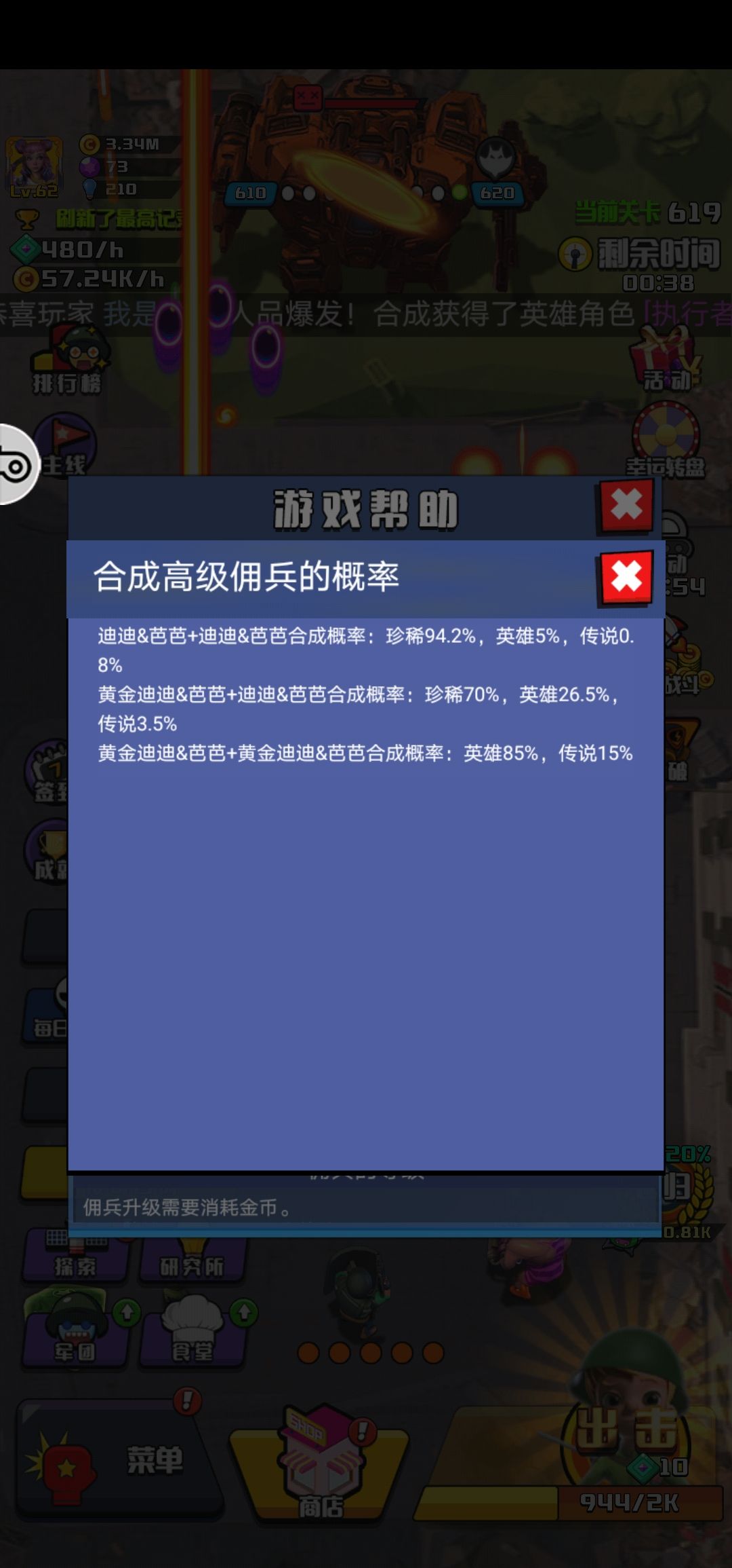 开局给什么不记得了,随便升级强化一下就好,等到晚上6点发完6000钻福利之后就开始十连吧,这是最好获得传说的来源,没有之一,开始我选择了2500换黄金战车的误区