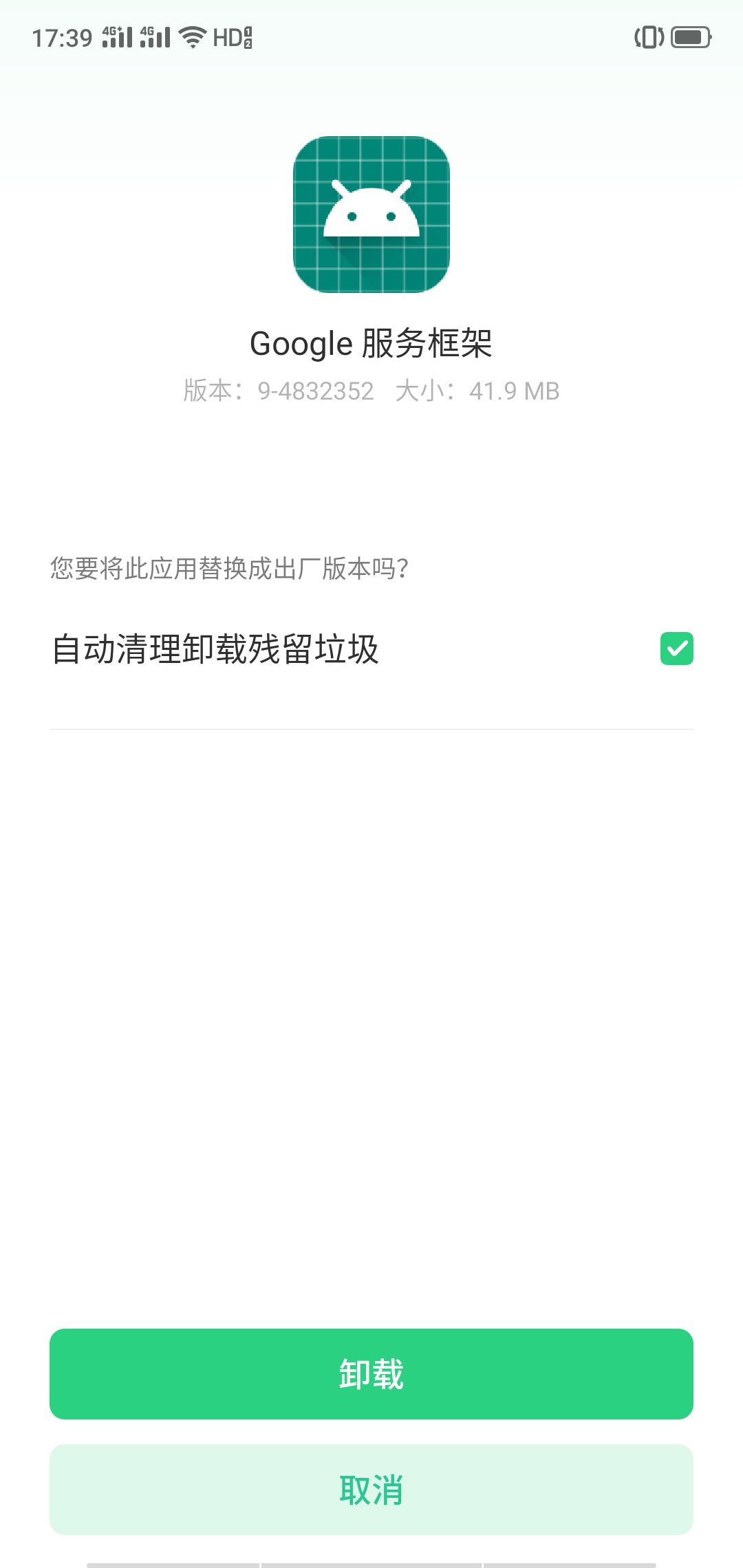 ②直接在手机存储空间,机子有可能不显示框架和服务。建议先用Go谷歌安装器一键卸载后,再到手机存储空间检查是否删完。