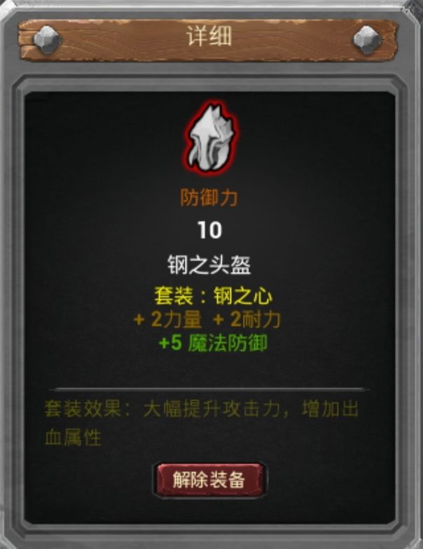 套装附带属性:力量,耐力,物理防御,魔法防御