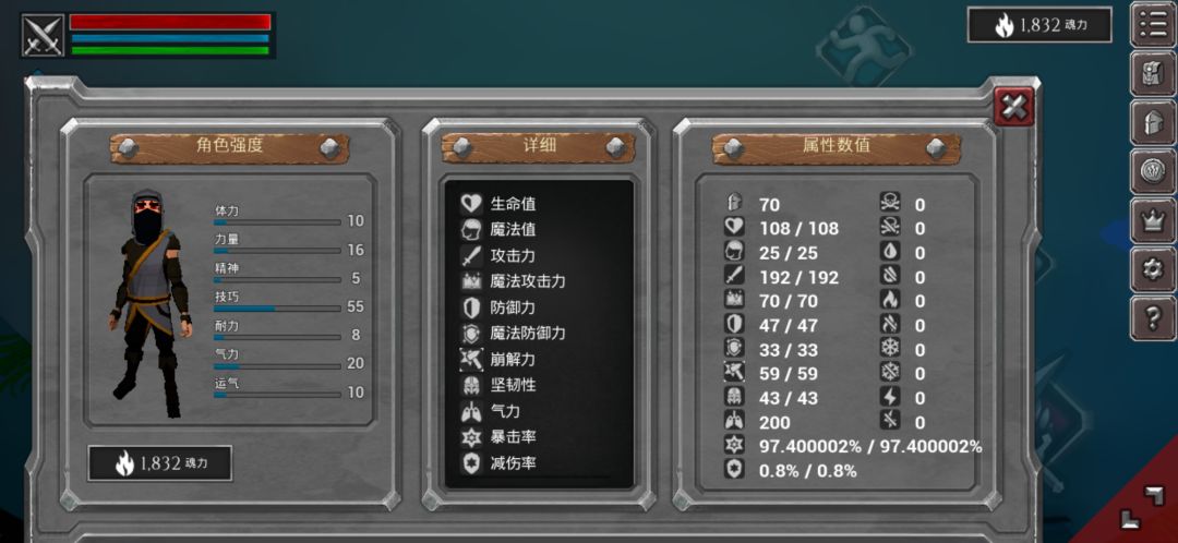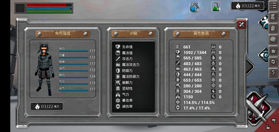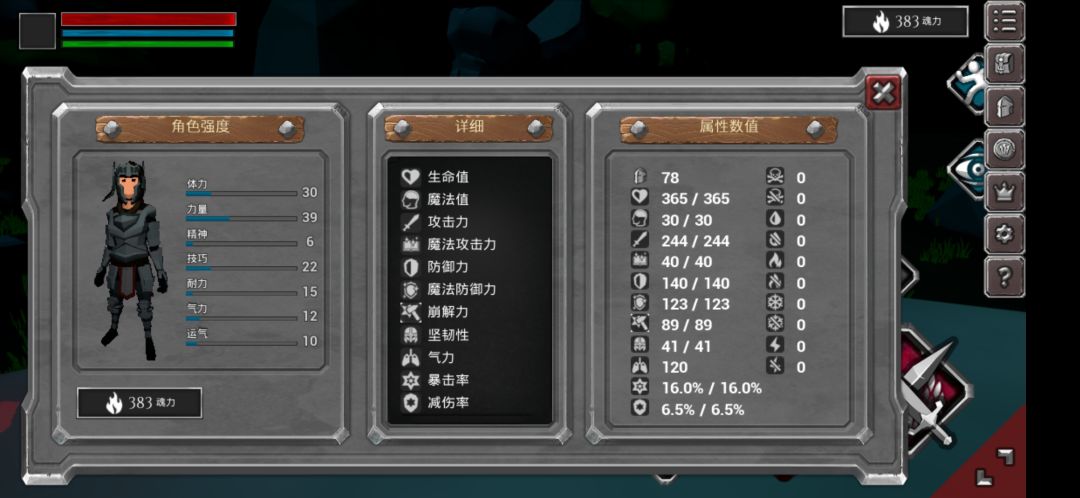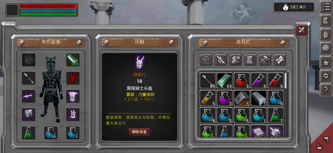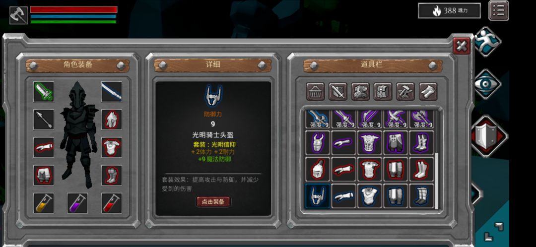 套装附带属性:气力(不生效)(小bug),耐力,力量,技巧,物理防御,魔法防御