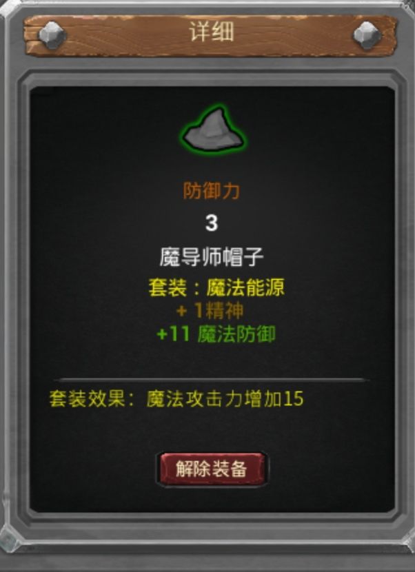 套装效果:增加11点物理防御力(小bug了)还有1点魔法防御