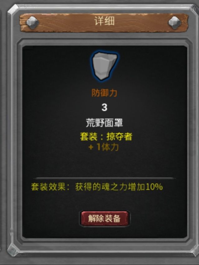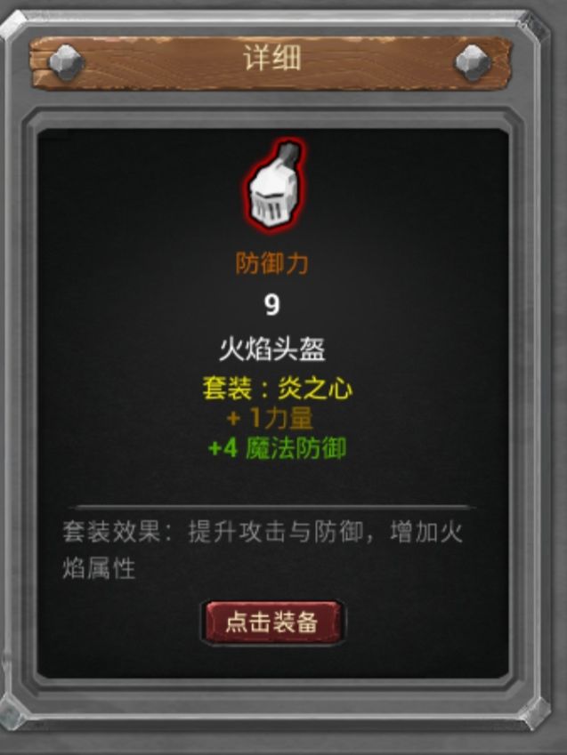 套装附带属性:耐力,力量,魔法防御,物理防御(随机刷)(注意第一件应该是属性最好的)