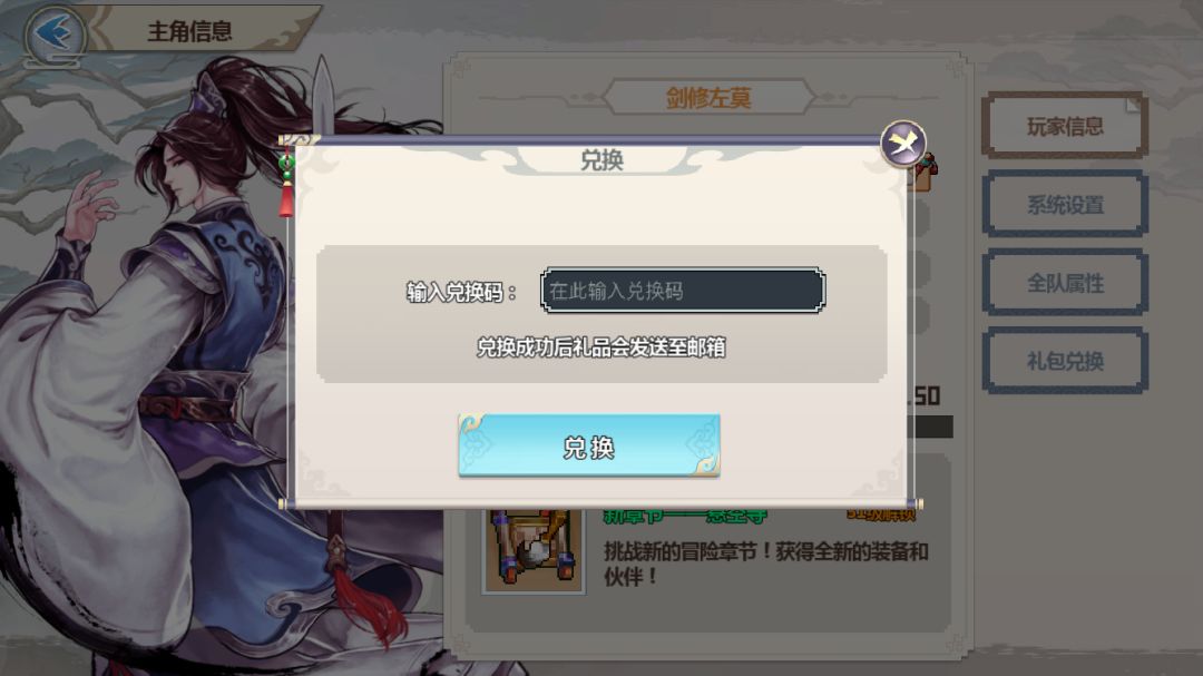 开启游戏,兑换礼包: