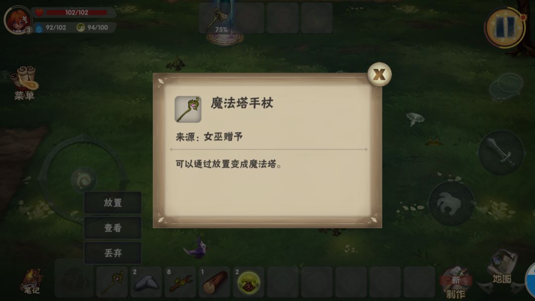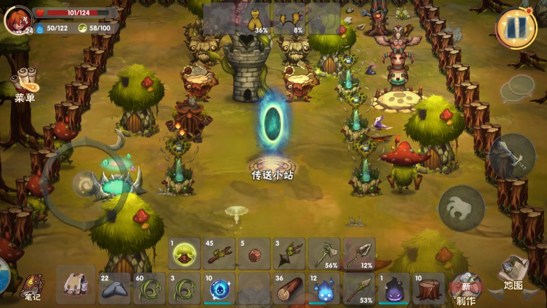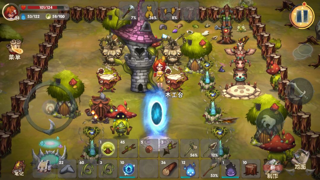 1.选择建家位置:首先收集材料把塔升到一级,然后就可以携带,我们先把塔收起来。