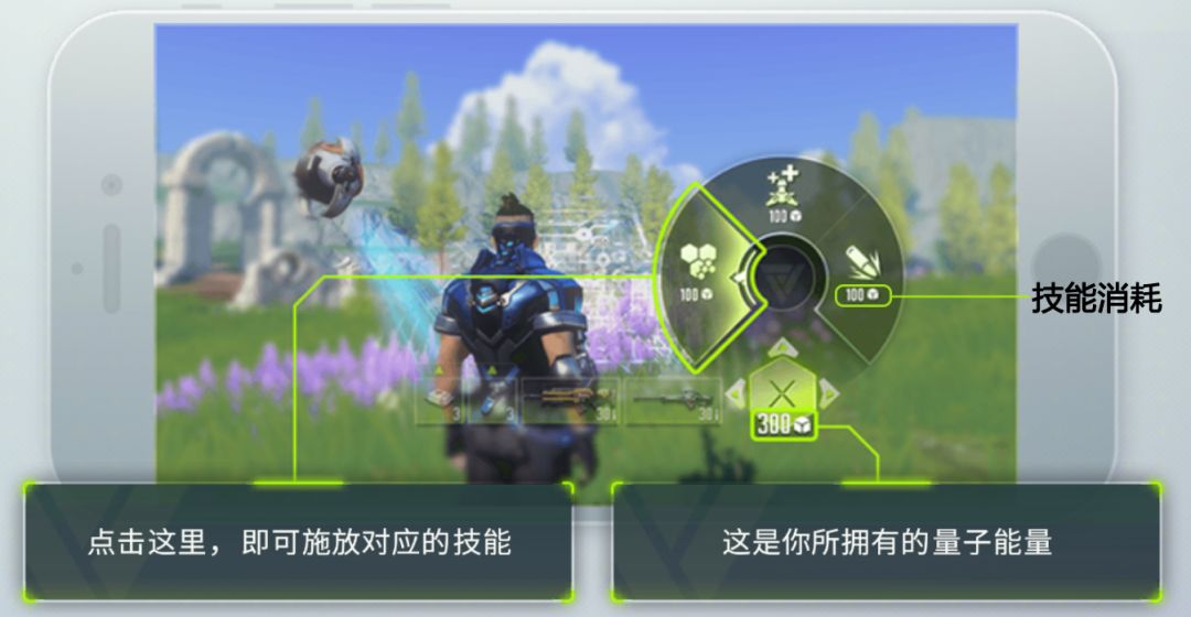 机仆功能位于武器栏的右侧,数字代表你拥有的量子能量。点击按钮后后可以看到一个圆形的包括3个技能的技能栏,下方数字代表技能需要消耗的量子能量。