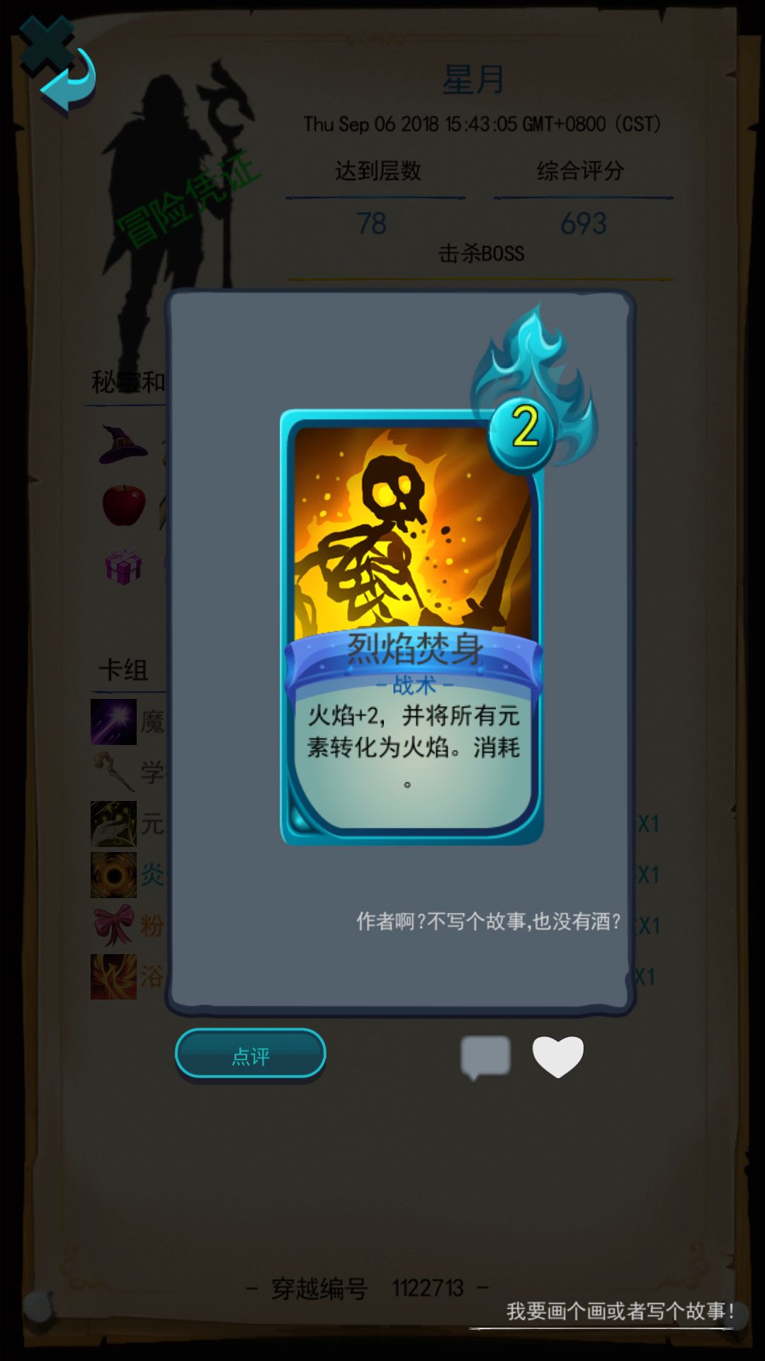 4,简单介绍一下火法,个人觉得火法的核心打法还是在于回复与伤害,前期最好拿到一张"自燃"快速升满然后就可以安稳度过前期了,中后期可以利用自燃与烈火焚身快速拿到满火元素(后期不止5个),然后推荐主要伤害卡推荐“飞火流萤”,流星一条!后期大概一颗流星50左右(平均)的伤害,我这里只用了两次(卡组轮换,因为只带了一张)就捶死了这个600血量的龙