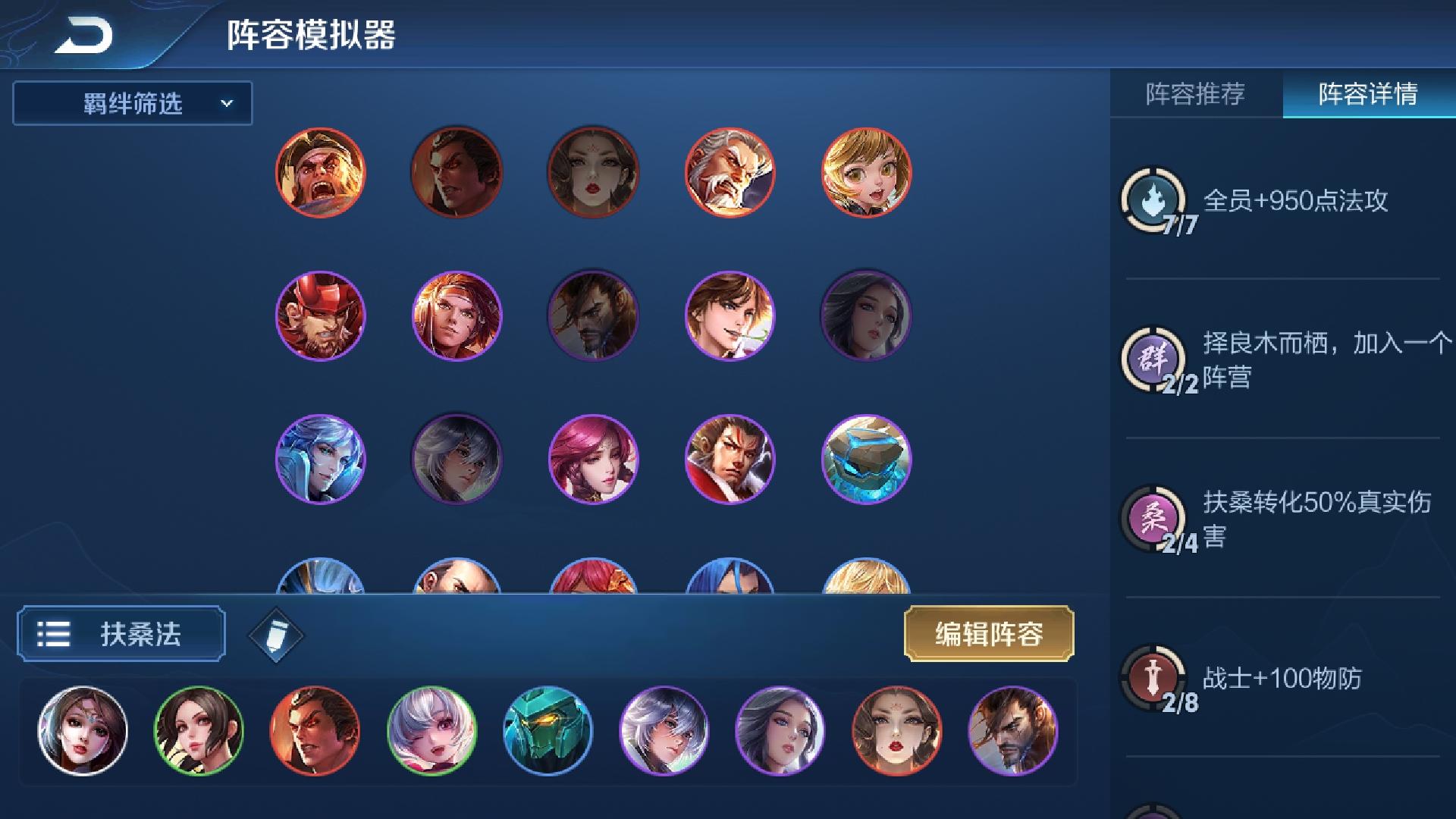 火舞、武则天、貂蝉、必须要拿,前期凑七法过渡一下其他法师也不一定要像图片上面的一样,可以自行搭配,拿个宫本凑扶桑羁绊,最后靠群雄羁绊加入扶桑形成真伤法师,装备优先级给武则天,武则天最好二星,小乔如果三星武则天没有二星的话可以给小乔虚无很适合女帝哦(´-ω-`)。武则天大招一开瞬间爆炸。