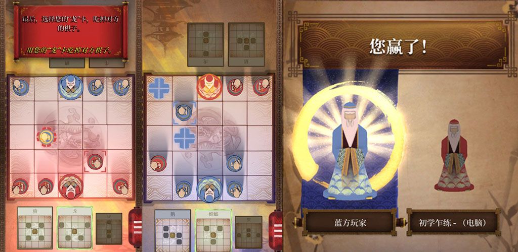 通过移动卡的“吃牌”方式占据有利地理环境,而每回合的换卡规则也会产生令人意外的结局,熟悉每种移动的走位设定很重要!建议先在单人模式锻炼技巧,再玩匹配模式。
