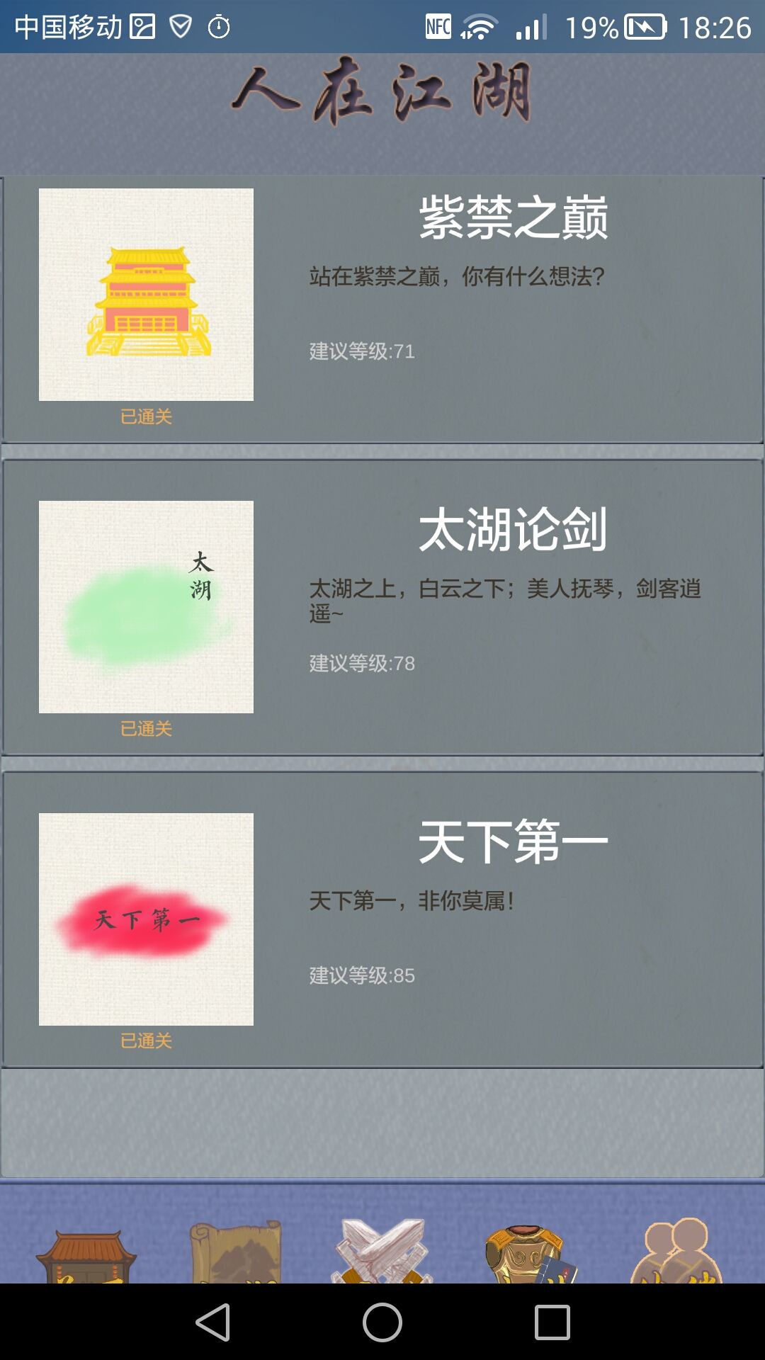 这个游戏是我玩过 设定最耐人寻味的游戏了 。一开始你先进入江湖点击各个位置获取能获得的宝物。但是途中不要消费因为后面要攒5w。获得能免费获得的所有宝物差不多5w金币200元宝 则可以去落英书院兑换逍遥游(群攻)接着刷到第四个副本就可以开始使用扫荡了 然后背包卖掉 再继续扫荡 (等刷到绿色装备的时候,扫荡或得的总收益>扫荡所需金币)先把等级提升到43级。接着把背包酒卖掉 买齐350朵🌹留99元宝 兑换苏小小最强控眩晕一回合。就可以无限刷逍遥游去刷了。其中毒王一关 是量变到质变的飞跃关卡。可以一直刷到100级,并且能或得最强橙装 。再把武学学满(苏小小25级可以控制4或者5次 随等级+蓝所以要给所有花给她升级)接着你就可以出山了,过剧情 打boss就砍瓜切菜一般 。