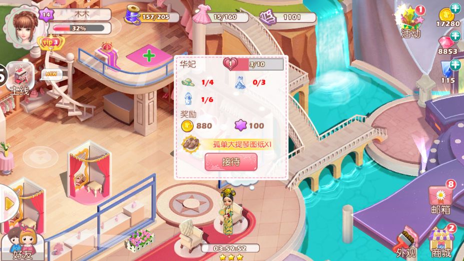 最后还要提醒我们的女王大人,要注意客人的需求和仓库的空间哦,精打细算才能快速致富,聘请白富美(新模特),装饰王国,走向人生巅峰^_^