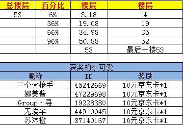 活动结束后我们会统计出踩中楼层的五名幸运玩家送出京东卡10元面额一张: