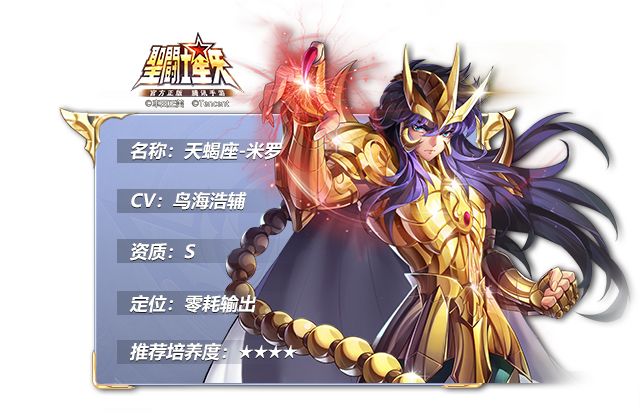 他就是在圣界有“希腊的阳光”之称,并被誉为“速度最快的黄金圣斗士”——天蝎座米罗。擅长削弱敌方防御,一招猩红毒针戳戳得对手痛不欲生,一旦被米罗的蝎尾扎过3次,基本就得献上膝盖。