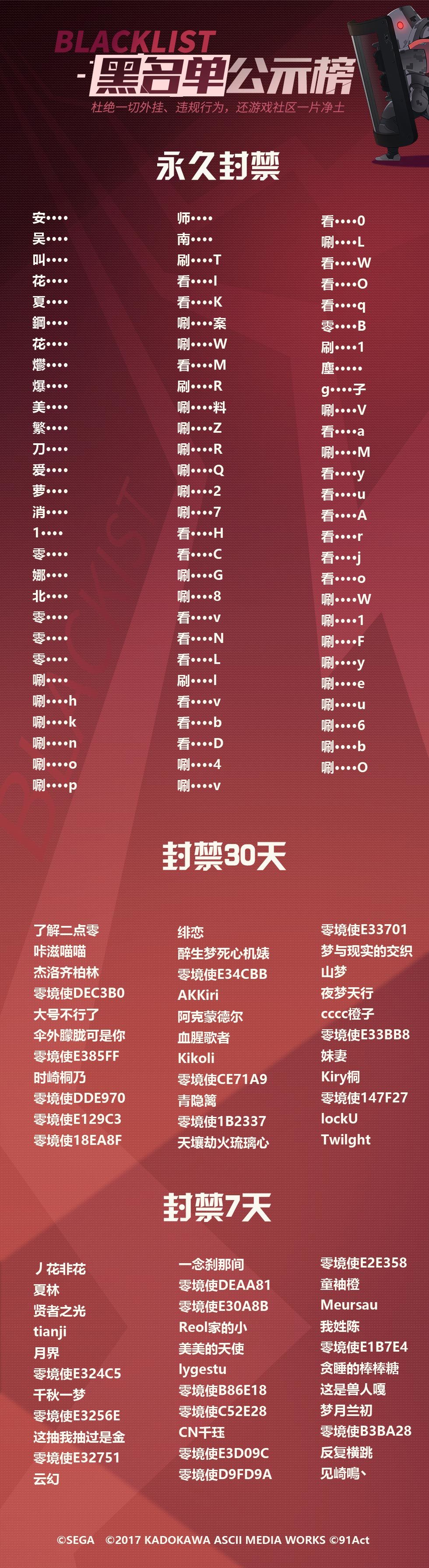 以下是本次封禁的名单公示